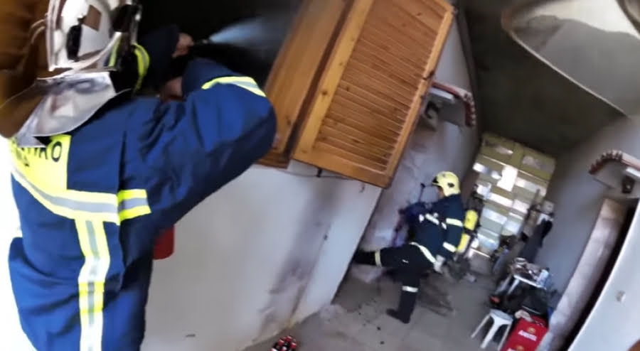 Η διάσωση ηλικιωμένου από φλεγόμενο σπίτι στην Κατερίνη (VIDEO)