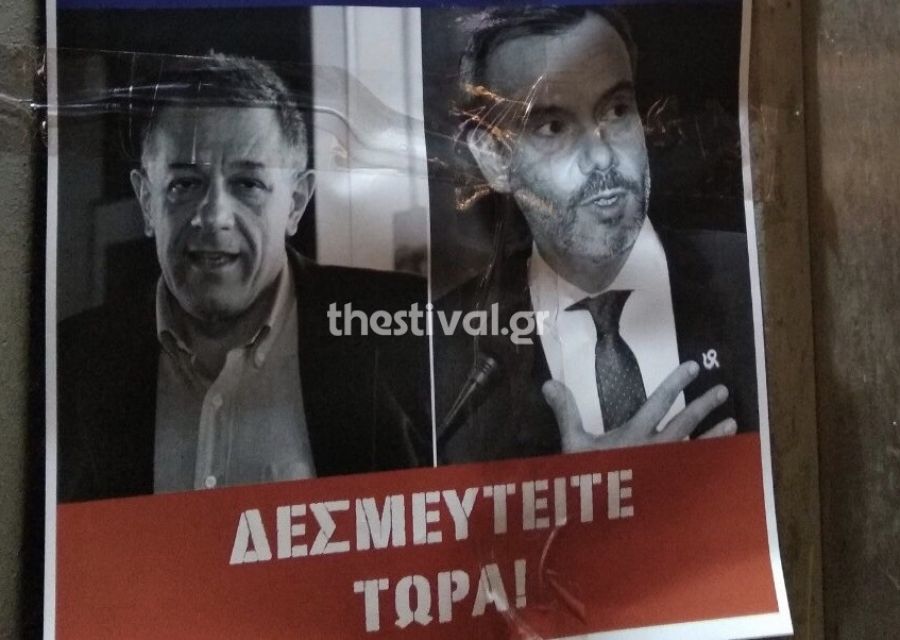 Αφίσες με τις οποίες καλούν τους δύο διεκδικητές του Δήμου Θεσσαλονίκης, Νίκο Ταχιάο και Κωνσταντίνο Ζέρβα, να αγωνιστούν για την ελληνικότητα της Μακεδονίας και την ακύρωση της Συμφωνίας των Πρεσπών, τοιχοκόλλησαν άγνωστοι στο κέντρο της πόλης.