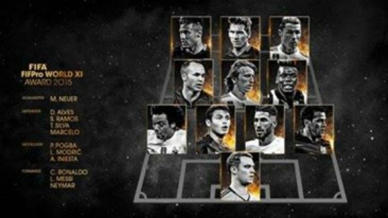 Από Μπαρτσελόνα, Ρεάλ Μαδρίτης και τους Νόιερ, Τιάγκο Σίλβα και Πογκμπά αποτελείται η Χρυσή 11άδα της FIFA για το 2015. Πιο συγκεκριμένα, οι 11 παίκτες που απαρτίζουν την κορυφαία ενδεκάδα της χρονιάς είναι οι: