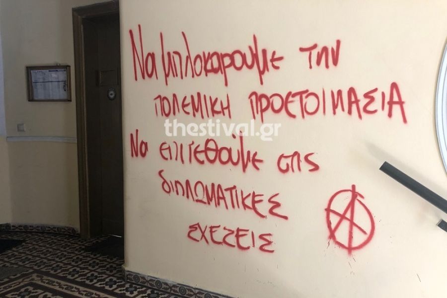 Σύμφωνα με πληροφορίες του thestival.gr, οι αντιεξουσιαστές ανήρτησαν πανό μπροστά στην είσοδο της πολυκατοικίας επί της οδού Τσιμισκή, το οποίο έγραφε: “Καμία συμφωνία για πολεμική παρέμβαση. Επίθεση στα διπλωματικά συμφέροντα Ελλάδας”. Εν συνεχεία πέταξαν τρικάκια με αντίστοιχο περιεχόμενο, ενώ έγραψαν σύνθημα με σπρέι στην είσοδο της πολυκατοικίας.