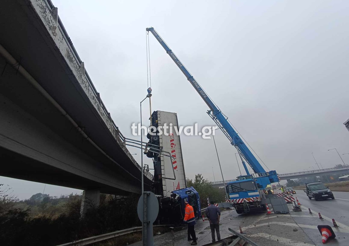 Απίστευτο τροχαίο στη Θεσσαλονίκη: Νταλίκα έπεσε από γέφυρα! (φωτο & video)