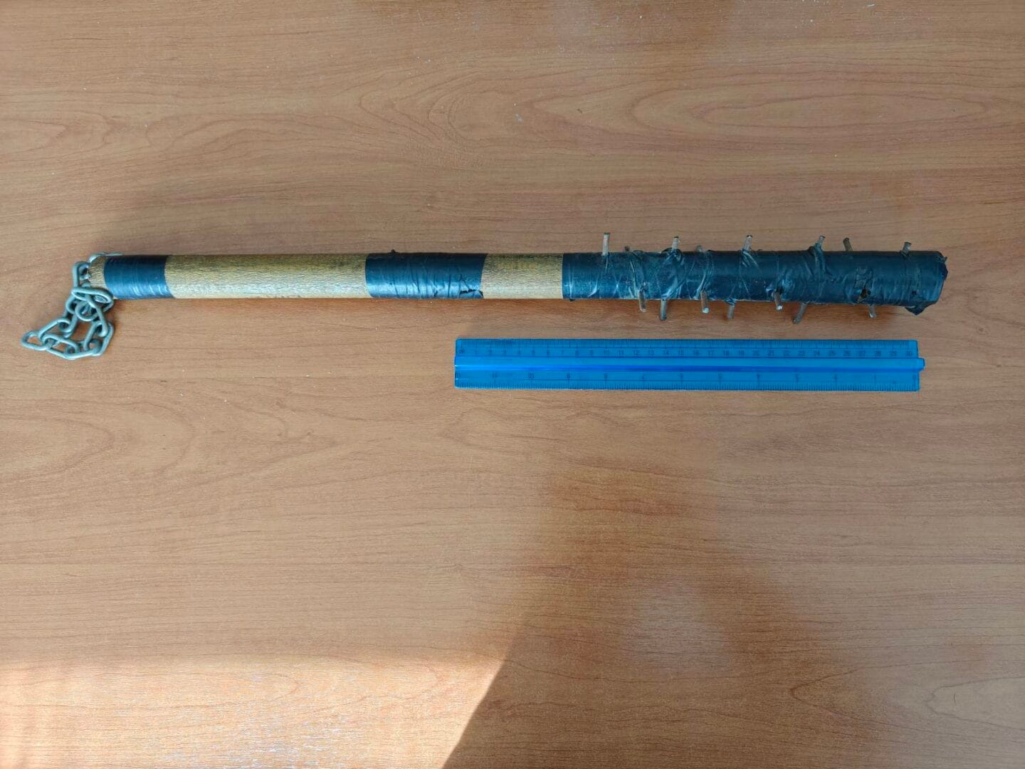Σε έρευνα που έγινε στην οικία του ενός από τους ημεδαπούς άνδρες, βρέθηκε και κατασχέθηκε ένα αυτοσχέδιο ρόπαλο με καρφιά.