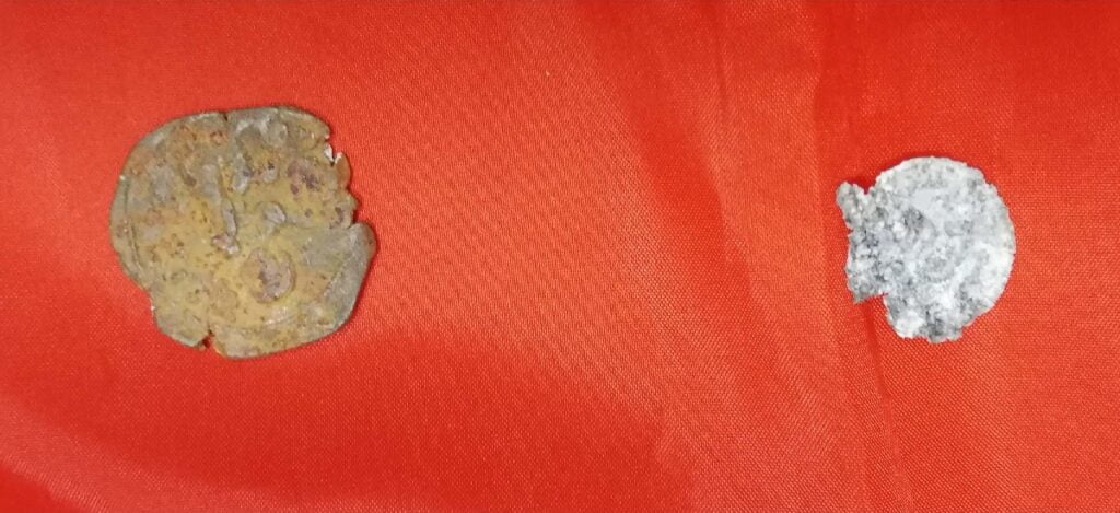 • (2) χάλκινα νομίσματα τα οποία, σύμφωνα με αρχαιολόγο της Εφορείας Αρχαιοτήτων Πόλης Θεσσαλονίκης, εμπίπτουν στις προστατευτικές διατάξεις του Νόμου «Για την προστασία των Αρχαιοτήτων και εν γένει της Πολιτιστικής Κληρονομιάς»,