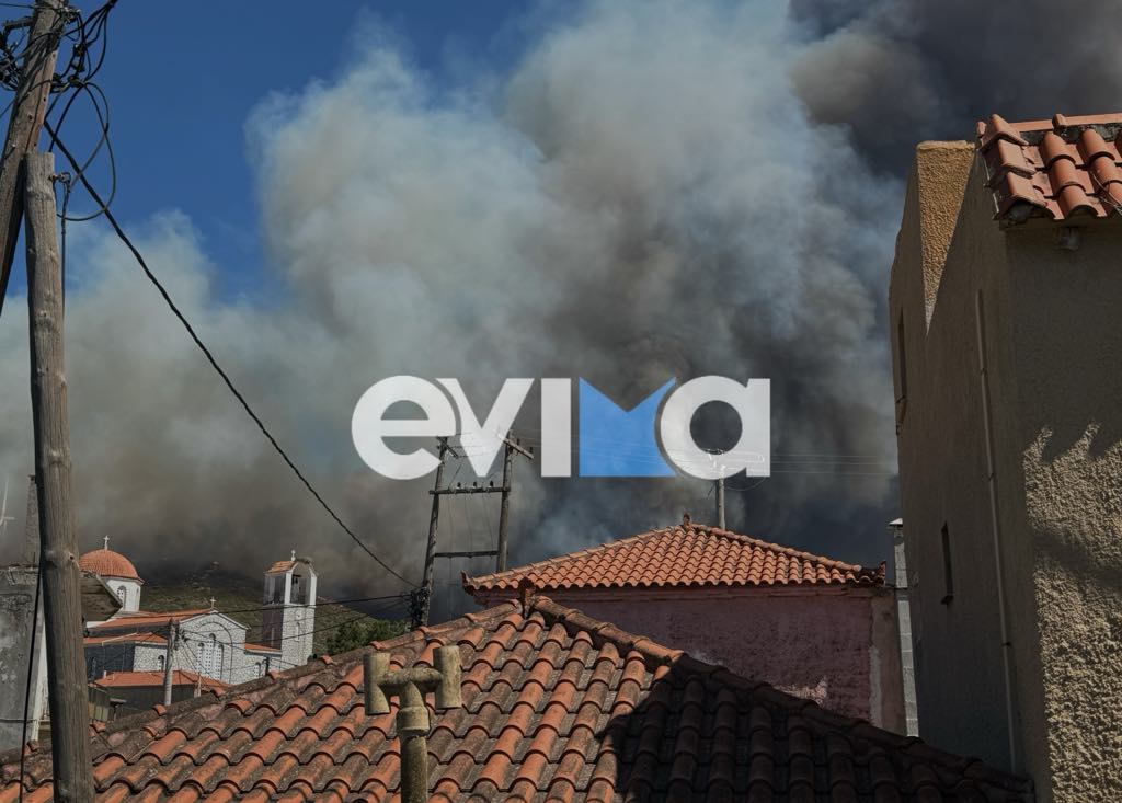 Μεγάλη φωτιά μαίνεται ανάμεσα σε δύο χωριά στην Εύβοια.