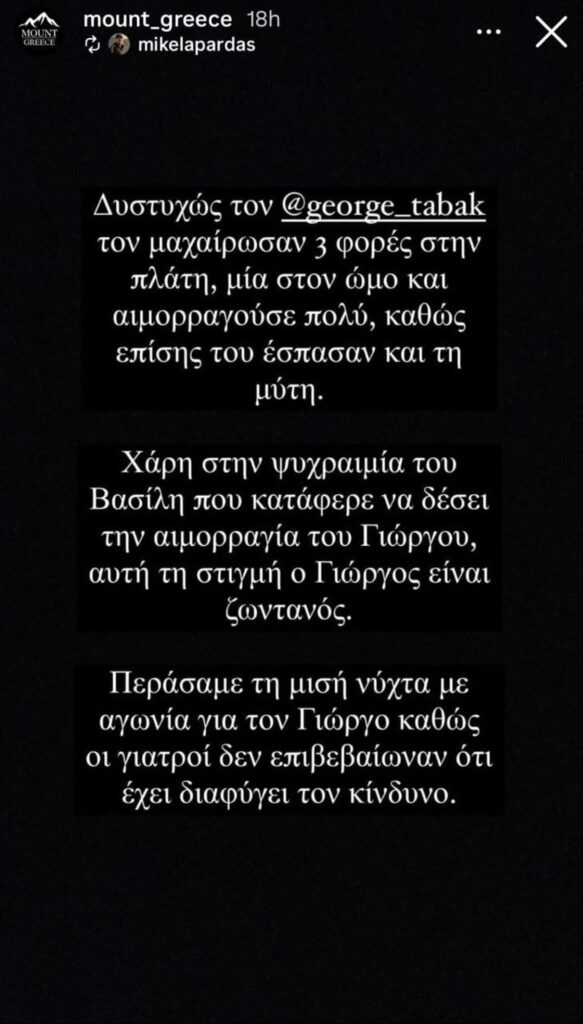 Έναν από τους εθελοντές, τον μαχαίρωσαν 3 φορές στην πλάτη και μια ακόμα στον ώμο, ενώ από τα χτυπήματα, του έσπασαν και τη μύτη. Όπως λένε επίσης, πέρασαν τη μισή νύχτα με αγωνία για την τύχη του εθελοντή με τις πολλαπλές μαχαιριές, αλλά διέφυγε τον κίνδυνο για τη ζωή του.