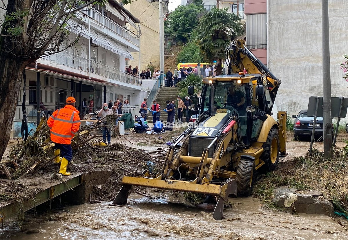 Το άψυχο σώμα του άνδρα παρασύρθηκε από το νερό και εντοπίστηκε σε ρέμα, στην οδό Μυτιλήνης. Το πτώμα εντόπισε πολίτης, ο οποίος προσέγγισε την άκρη του ρέματος και το ανέσυρε.
