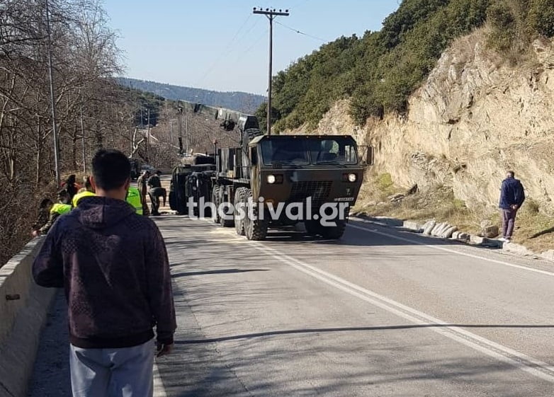 Θεσσαλονίκη: Ανατροπή στρατιωτικού οχήματος στο Φίλυρο (φωτο & video)