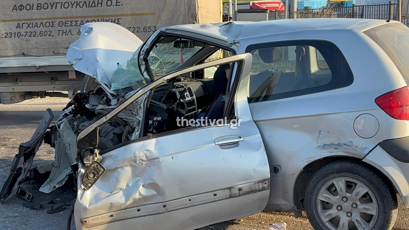 Θεσσαλονίκη: Διαλύθηκε το αυτοκίνητο που συγκρούστηκε με φορτηγό στο φανάρι της Αγχιάλου – Τρομακτικές εικόνες και βίντεο