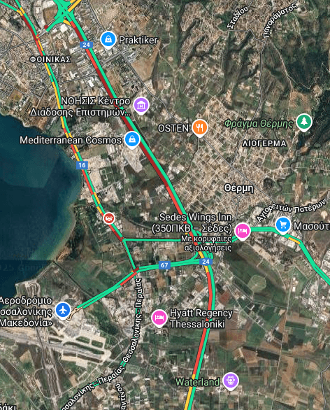 Συγκεκριμένα, παρατηρείται έντονη κυκλοφοριακή συμφόρηση στην αρχή της ΕΟ Θεσσαλονίκης-Μουδανιών, από το κόμβο του Περιφερειακού έως και την έξοδο για το αεροδρόμιο Μακεδονία.