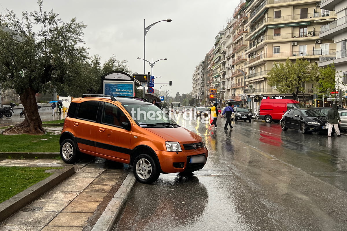 Θεσσαλονίκη: Ο δυνατός αέρας έβγαλε σταθμευμένο αυτοκίνητο στη μέση του δρόμου (φωτο)