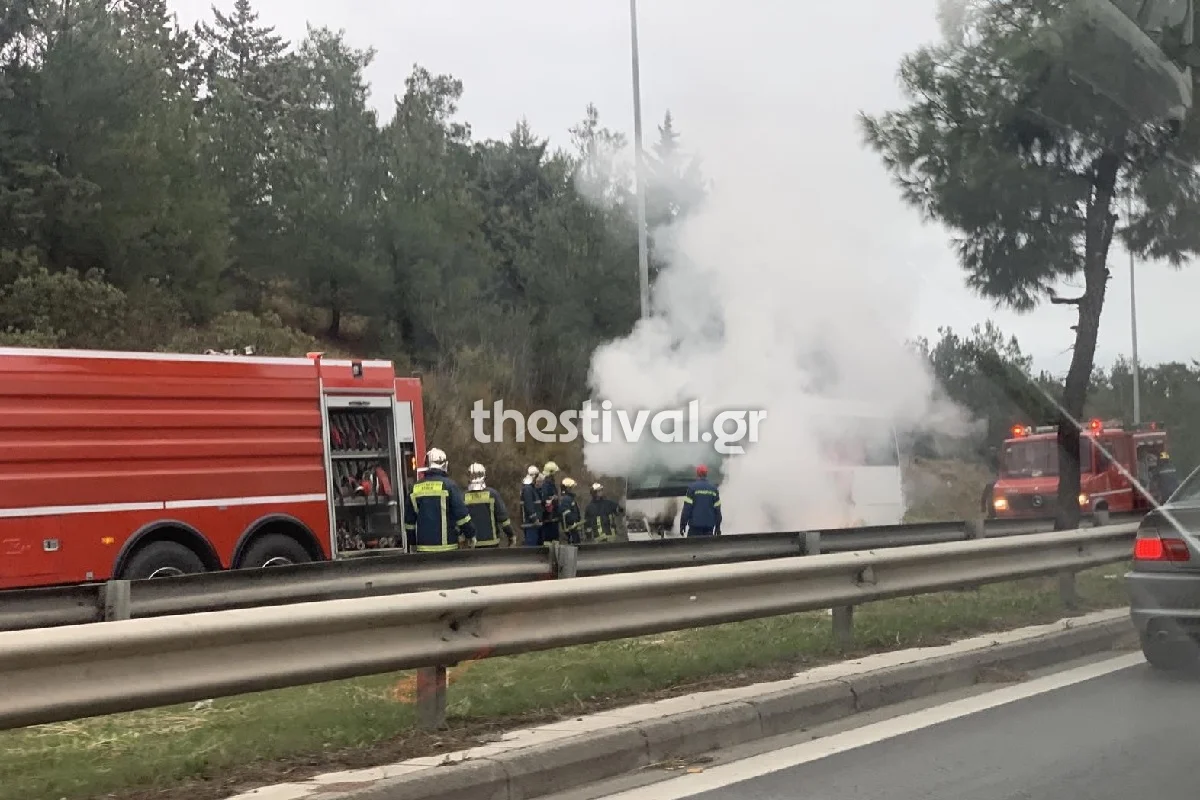 Θεσσαλονίκη: Στις φλόγες τουριστικό λεωφορείο – Το εγκατέλειψαν οδηγός και επιβάτες