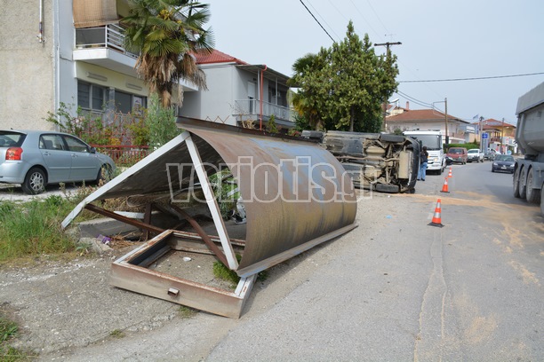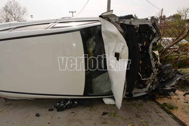 Το αυτοκίνητο κινούνταν με κατεύθυνση από Βέροια προς Σκύδρα, πέρασε στο αντίθετο ρεύμα και έπεσε πάνω στο στέγαστρο λεωφορείων.