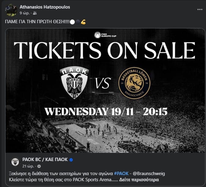 Στο μεταξύ, ο πρόεδρος της ΚΑΕ, Θανάσης Χατζόπουλος, δεν παρέλειψε να απευθύνει το δικό του κάλεσμα προς τον κόσμο της ομάδας, μέσα από τα social media, ζητώντας από τους φιλάθλους να γεμίσουν το γήπεδο και να στηρίξουν την προσπάθεια της ομάδας σε έναν αγώνα που χαρακτηρίζεται «τελικός».