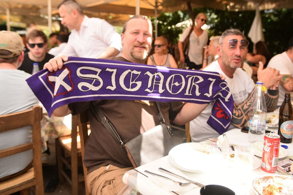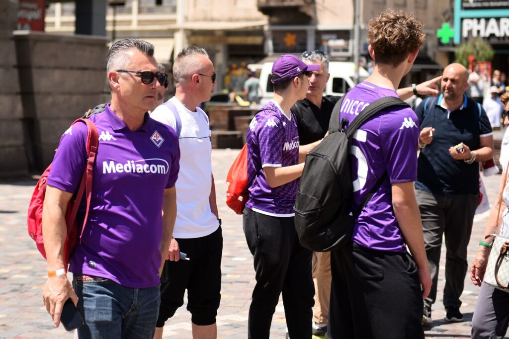 Οι φίλοι της Φιορεντίνα ντυμένοι με τα χρώματα της ομάδας τους φώναξαν συνθήματα, ανέμισαν τα κασκόλ και τις σημαίες τους και έδωσαν συνεντεύξεις σε ιταλικά μέσα, εκφράζοντας την πεποίθηση τους, ότι η ομάδα τους θα κατακτήσει σήμερα το βράδυ το UEFA Conference League.