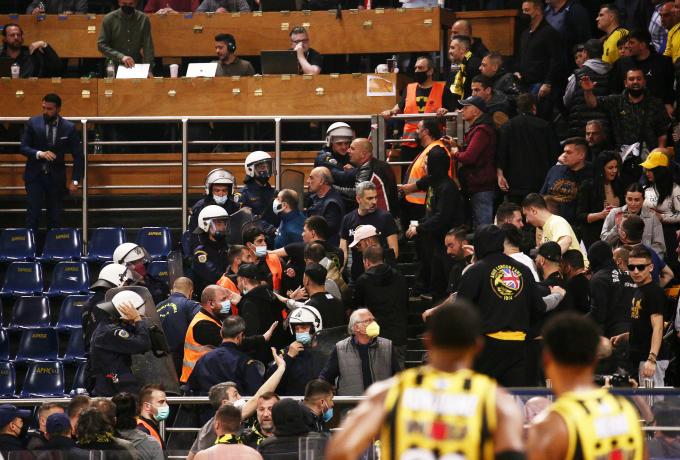 Η ένταση προκλήθηκε για άγνωστη μέχρι στιγμής αιτία, πίσω από τον πάγκο του Δικεφάλου, με τις αστυνομικές δυνάμεις και τους ψυχραιμότερους να επεμβαίνουν για να ηρεμήσει η κατάσταση.