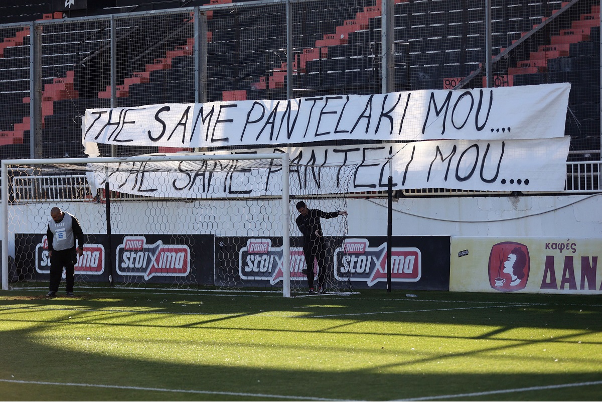 «The same Pantelaki mou, the same Panteli mou», γράφει το μεγάλο πανό που κρέμασαν στο πέταλο που βρίσκονται οι φανατικοί οπαδοί της ομάδας του Ηρακλείου, σε μία κίνηση που δείχνει την έντονη δυσαρέσκεια που υπάρχει στο οπαδικό κίνημα των Κρητικών φέτος.