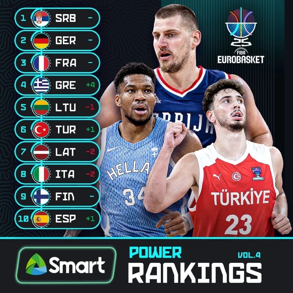 Eurobasket 2025: Στην τέταρτη θέση των power rankings ανέβηκε η Εθνική, λίγες μέρες πριν το πρώτο τζάμπολ