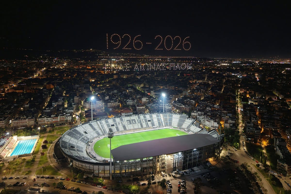 Οι εκδηλώσεις για τον έναν αιώνα ΠΑΟΚ κορυφώνονται και στην Τούμπα πραγματοποιήθηκε ένα εντυπωσιακό drone show για τα 100 χρόνια του “Δικεφάλου του Βορρά”.