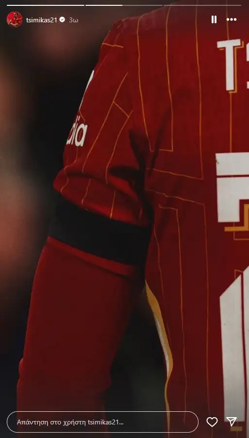 Ο Κώστας Τσιμίκας έκανε δύο αναρτήσεις στα social media για τα Τέμπη, με μία να δείχνει τον ίδιο με τη φανέλα της Λίβερπουλ, εστιάζοντας σε ένα μαύρο περιβραχιόνιο που φορούσε στο χέρι του.