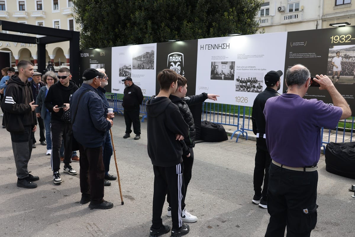Ο χώρος έχει μετατραπεί σε ένα ανοιχτό, ζωντανό ταξίδι στην ιστορία του ΠΑΟΚ, με εικόνα, ήχο και δράσεις για μικρούς και μεγάλους.