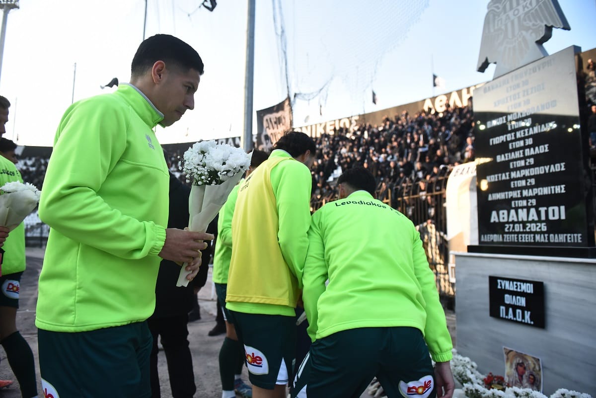 Στη μνήμη του 20χρονου Κλεομένη, μετά τη λήξη της καθιερωμένης προθέρμανσης, τόσο οι γηπεδούχοι, όσο και ο φιλοξενούμενος Λεβαδειακός, βρέθηκαν μπροστά στη Θύρα 4, καταθέτοντας λουλούδια στο μνημείο που στήθηκε στη μνήμη των αδικοχαμένων φίλων του ΠΑΟΚ.