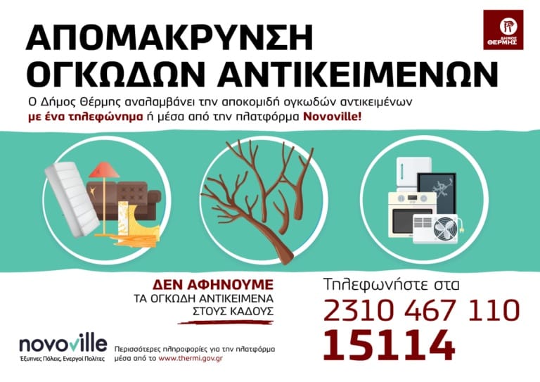 Για την αποκομιδή όλων αυτών μπορούν οι πολίτες να απευθύνονται στον Δήμο, είτε με ένα τηλεφώνημα στα τηλέφωνα 2310478035-040 ή στο 15114 είτε μέσα από την πλατφόρμα Novoville.