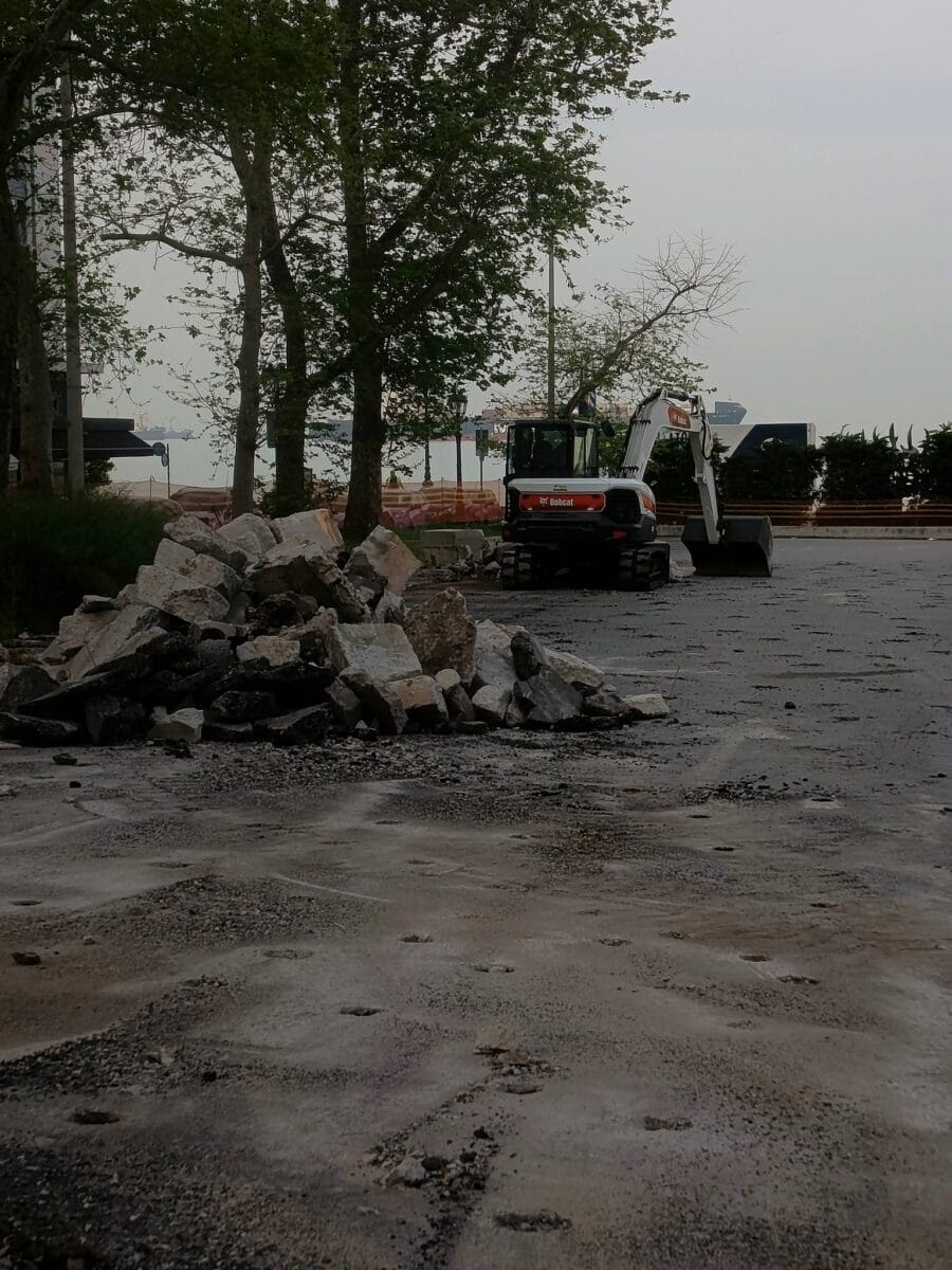Ήδη από νωρίς το πρωί στον χώρο της πλατείας βρίσκονται σκαπτικά μηχανήματα που προχωρούν στο ξήλωμα της ασφάλτου, προκειμένου να δημιουργηθεί το Πάρκο Μνήμης στο σημείο.