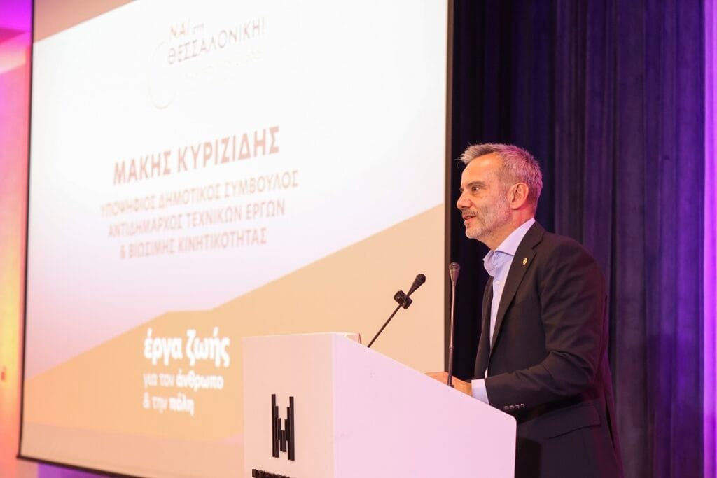 Την κεντρική του ομιλία πραγματοποίησε ο αντιδήμαρχος Τεχνικών Έργων του Δήμου Θεσσαλονίκης, Μάκης Κυριζίδης σε μια κατάμεστη αίθουσα στο Μακεδονία Παλλάς.