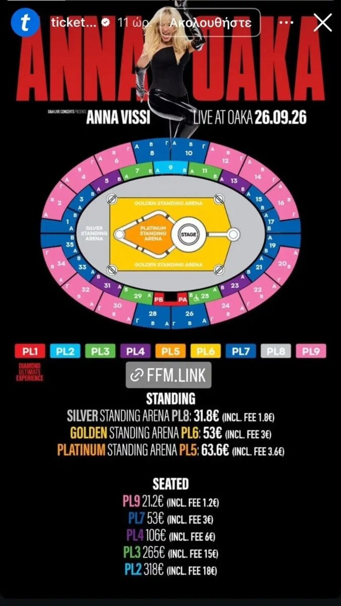 Χαμός με τα εισιτήρια για τη μεγαλειώδη συναυλία της Άννας Βίσση στο ΟΑΚΑ, στις 26 Σεπτεμβρίου 2026.