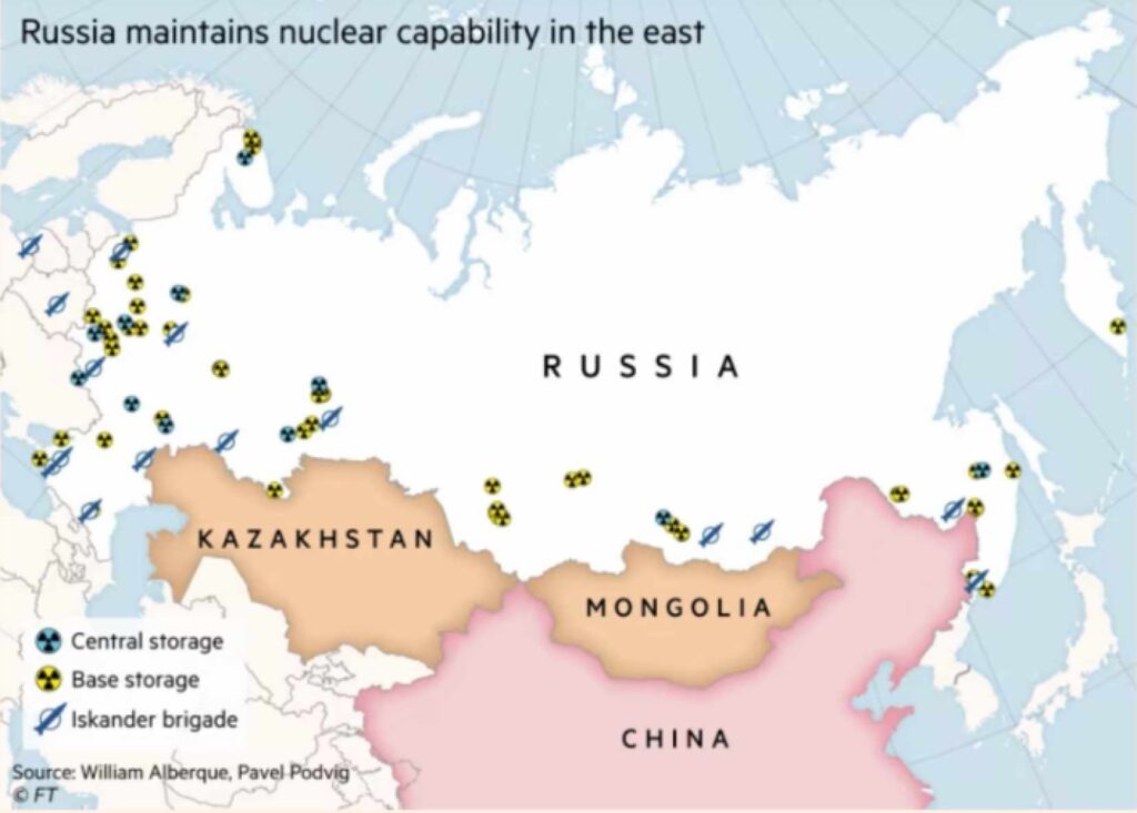 Συγκεκριμένα σύμφωνα με το ρεπορτάζ των Financial Times με τίτλο «Διαρροή ρωσικών στρατιωτικών αρχείων αποκαλύπτουν τα κριτήρια για πυρηνικό χτύπημα» η Μόσχα έχει εξετάσει τα ενδεχόμενα πυρηνικής σύγκρουσης με πιθανό σενάριο εισβολής στην επικράτειάς της από την Κίνα. Τα απόρρητα έγγραφα, τα οποία είδαν οι Financial Times, περιγράφουν τα κριτήρια για τη χρήση τακτικών πυρηνικών όπλων που είναι χαμηλότερα από αυτά που η Ρωσία έχει ποτέ παραδεχτεί δημοσίως, σύμφωνα με εμπειρογνώμονες που εξέτασαν και επαλήθευσαν τα έγγραφα.