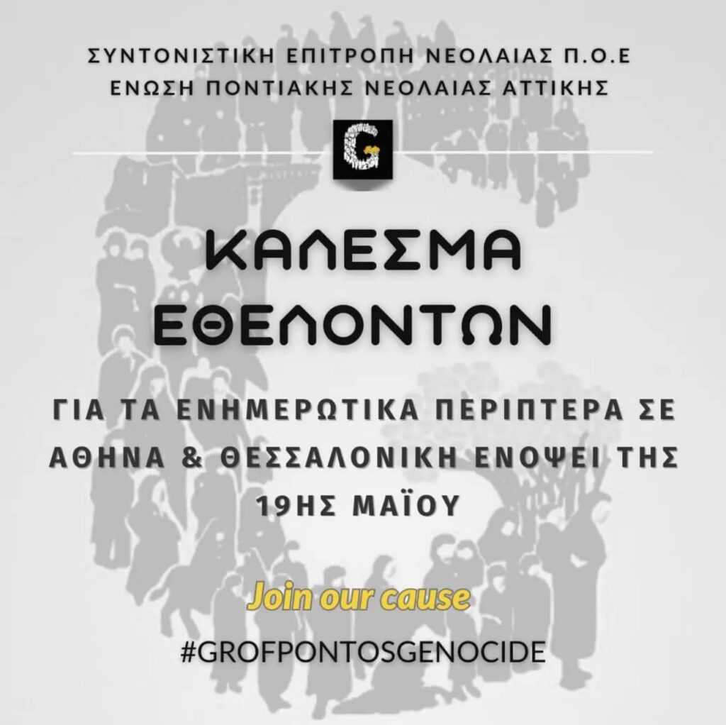 Παμποντιακή Ομοσπονδία Ελλάδας: Κάλεσμα Εθελοντών για τα ενημερωτικά περίπτερα σε Αθήνα και Θεσσαλονίκη ενόψει της 19ης Μαΐου