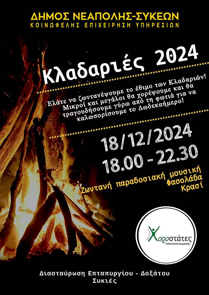 Η αναβίωση του παραδοσιακού εθίμου των «Κλαδαριών» παίρνει αύριο το απόγευμα τη σκυτάλη του πολύχρωμου προγράμματος χριστουγεννιάτικων εκδηλώσεων στον δήμο Νεάπολης-Συκεών.