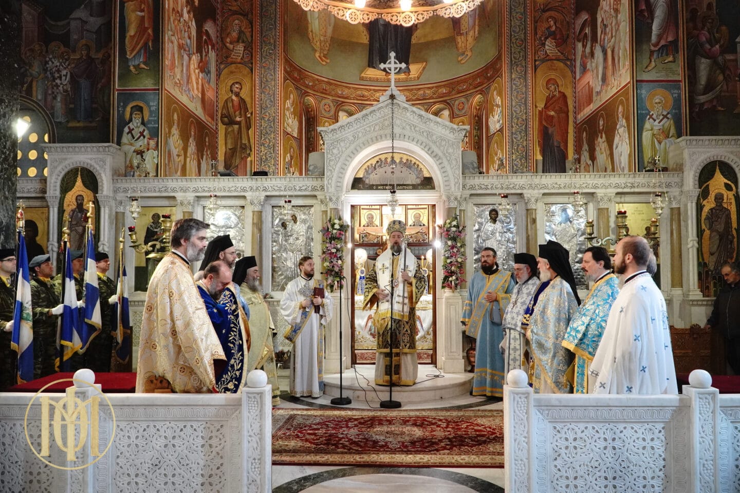 Προ της απολύσεως της Θείας Λειτουργίας ο κ. Φιλόθεος κήρυξε τον Θείο Λόγο ενώπιον των αξιωματικών των Ενόπλων Δυνάμεων, καθώς τη σημερινή ημέρα οι Ένοπλες Δυνάμεις της πατρίδας μας τιμούν ως προστάτιδά τους την Υπέρμαχο Στρατηγό.
