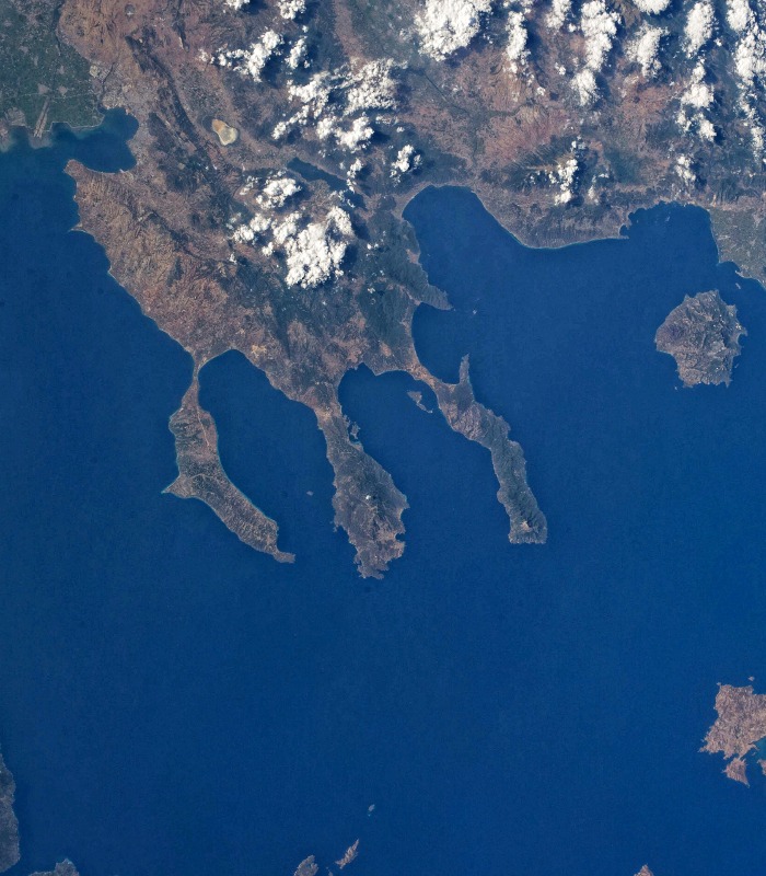 Σε φωτογραφία που τραβήχτηκε από τον Διεθνή Διαστημικό Σταθμό απεικονίζεται στο επίκεντρο η Χαλκιδική, αριστερά η Θεσσαλονίκη, όπως και περιοχές της ανατολικής Μακεδονίας (στα δεξιά).