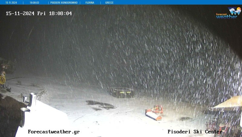 Όπως δείχνουν οι κάμερες του forecastweather.gr, πυκνές χιονοπτώσεις πέφτουν από το απόγευμα στο Πισοδέρι και το Νυμφαίο της Φλώρινας, καθώς και στη Σαμαρίνα και τη Βασιλίτσα στα Γρεβενά.