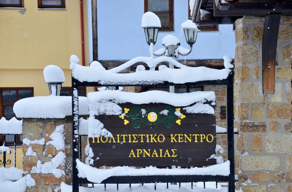 Παράλληλα, μοναδικές είναι και οι εικόνες από την Αρναία Χαλκιδικής, όπου τα πάντα έχουν θαφτεί στο χιόνι.