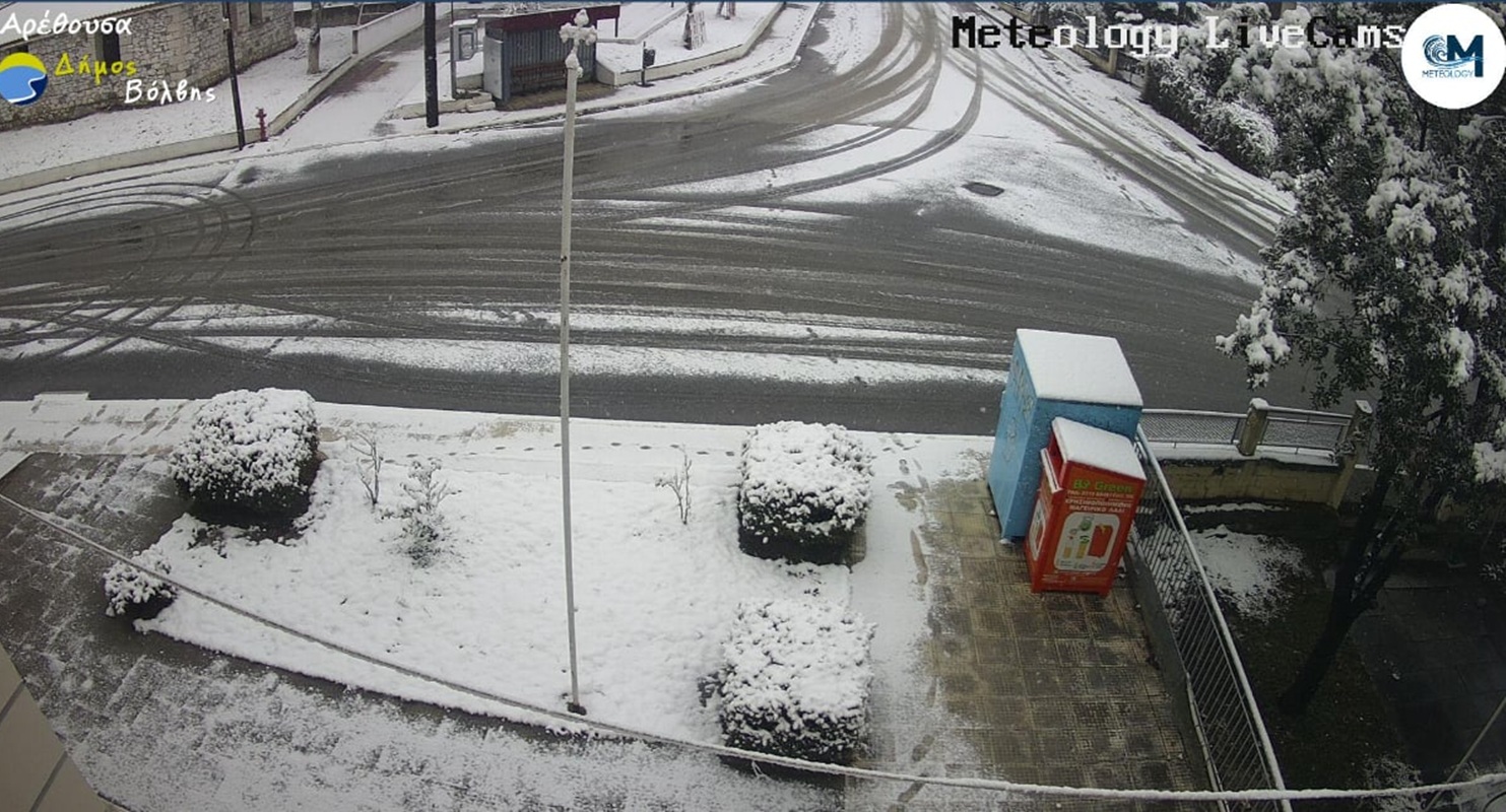 Στα λευκά “ντύθηκαν” περιοχές της Θεσσαλονίκης από την επέλαση του χιονιά που είναι σε εξέλιξη από χθες στη Βόρεια Ελλάδα.