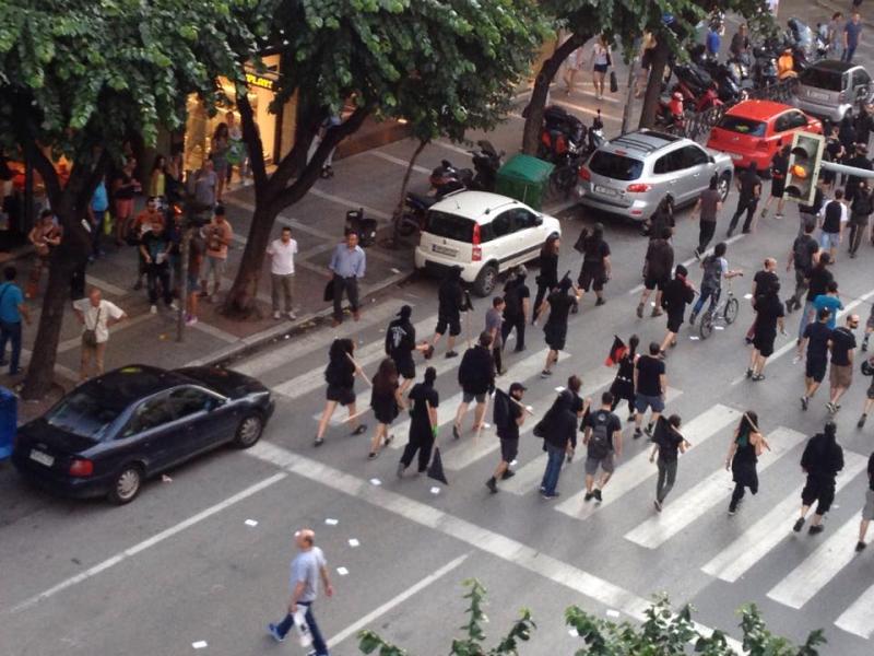 ΤΩΡΑ: Κουκουλοφόροι έσπασαν βιτρίνα καταστήματος στο κέντρο της Θεσσαλονίκης (ΦΩΤΟ)