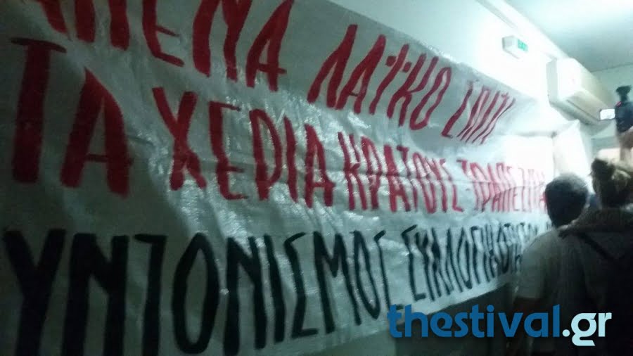 Στη συνέχεια ανέβηκαν στο γραφείο της διευθύντριας της Ε΄ΔΟΥ. Προς στιγμήν επικράτησε ένταση, αφού στο σημείο βρίσκονταν άνδρες των ΜΑΤ. Οι διαμαρτυρόμενοι ζήτησαν να αποχωρήσουν κάτι που έγινε μετά από λίγο.