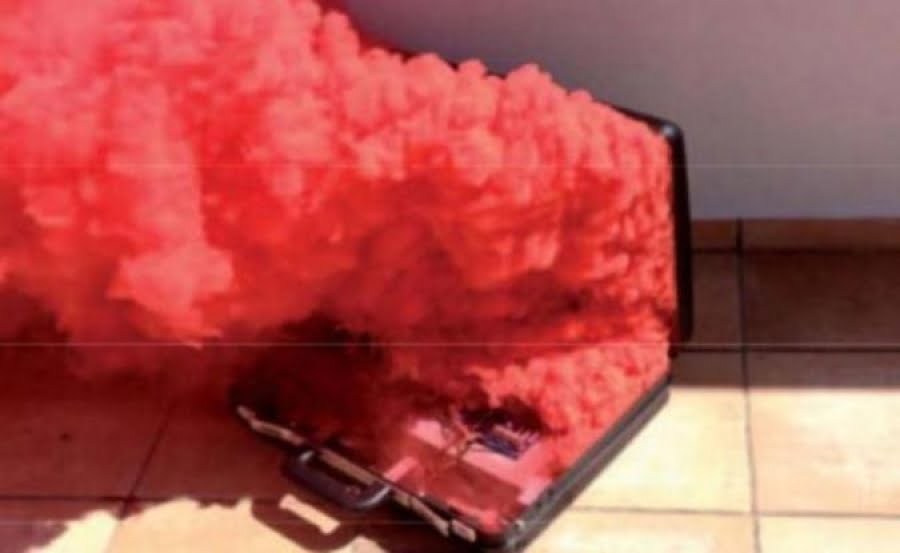 Όμως όταν πήγαν να την ανοίξουν έσπασε η ειδική αμπούλα της τσάντας της χρηματαποστολής και έβαψε (καθιστώντας άχρηστα) όλα τα χαρτονομίσματα.