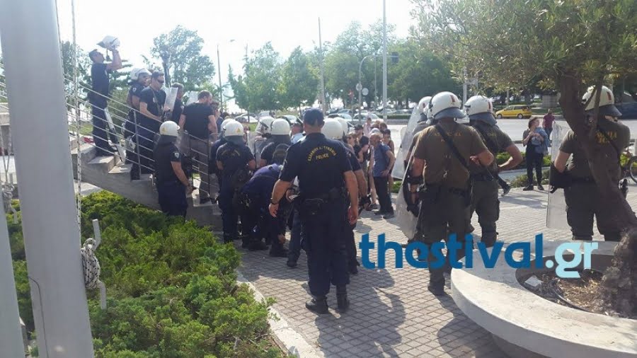 Ένταση επικράτησε πριν από λίγο έξω από το δημαρχείο της Θεσσαλονίκης, μεταξύ ανδρών των ΜΑΤ και μελών του Ελεύθερου Κοινωνικού Χώρου “Σχολείο”.
