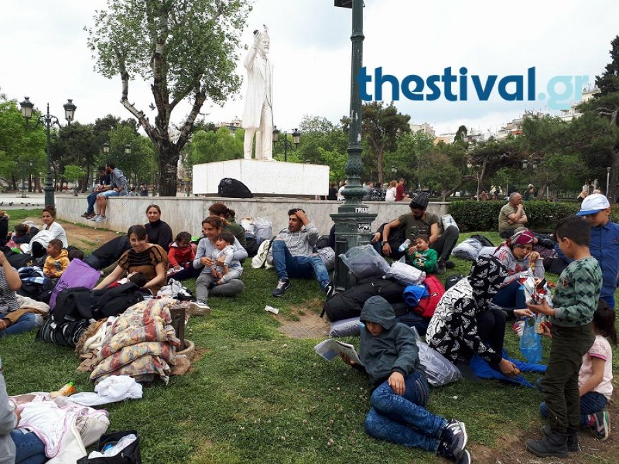Περίπου 60 πρόσφυγες και μετανάστες από την Συρία και την Τουρκία έχουν συγκεντρωθεί αυτή την ώρα στο άγαλμα Βενιζέλου, στο κέντρο της Θεσσαλονίκης. Οικογένειες με μικρά παιδιά και μωρά, όπως ανέφεραν στο thestival.gr, έφτασαν χθες στη Θεσσαλονίκη και μένουν στο πάρκο.