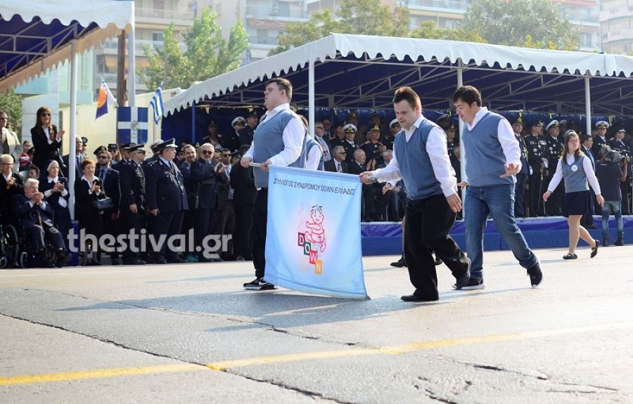 Με υπερηφάνεια παρέλασαν νέοι και νέες με σύνδρομο Down στην στρατιωτική παρέλαση της Θεσσαλονίκης για την εθνική επέτειο της 28ης Οκτωβρίου.