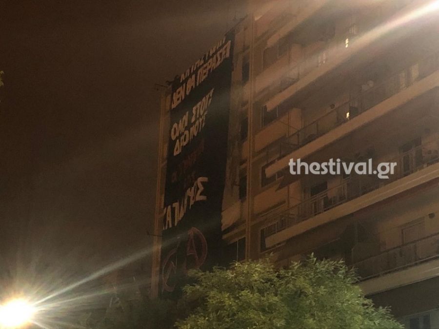 Θεσσαλονίκη: Αντιεξουσιαστές κρέμασαν γιγαντοπανό υπέρ των καταλήψεων στο ΕΚΘ (ΦΩΤΟ)