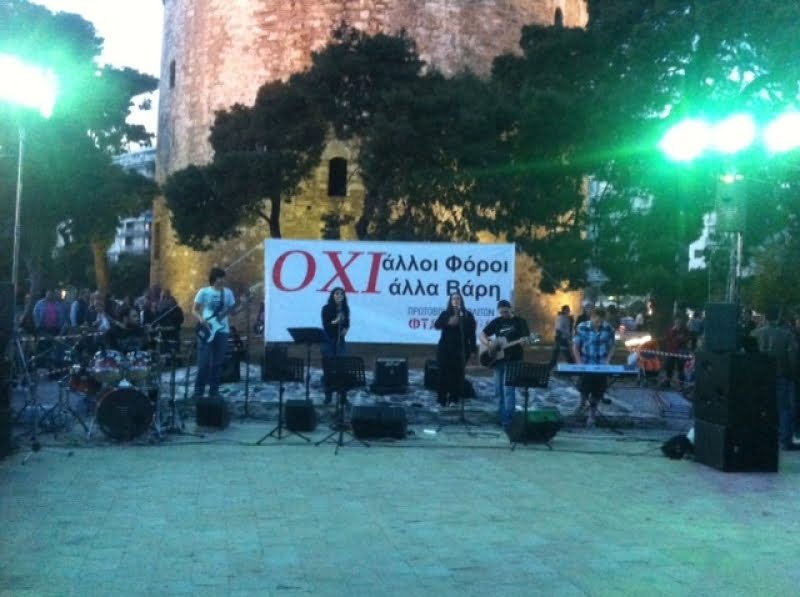 Λευκό Πύργο και φωνάζουν “ΦΤΑΝΕΙ ΠΙΑ- Δεν αντέχουμε άλλα βάρη”. Τη διαμαρτυρία διοργανώνει το Ράδιο Θεσσαλονίκη και ντύνουν μουσικά συγκροτήματα της πόλης. Δείτε φωτογραφίες και βίντεο: