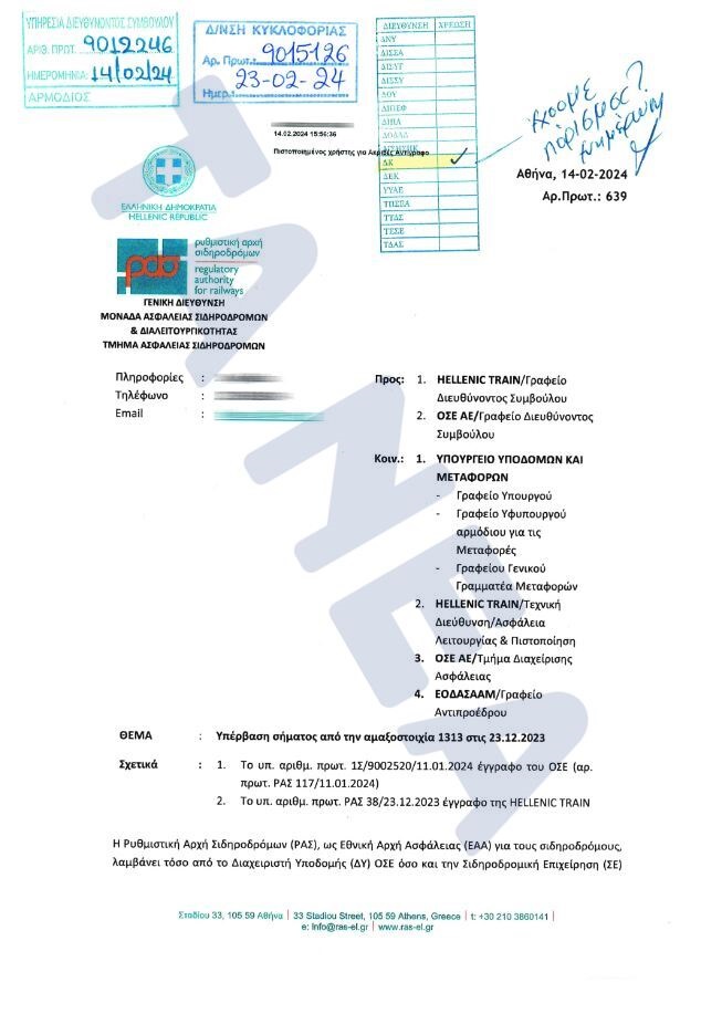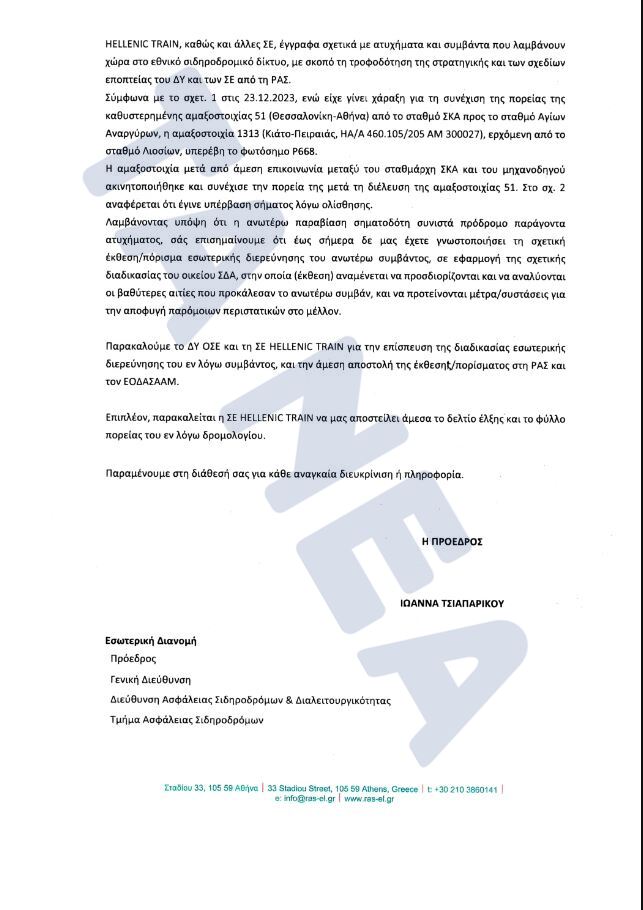 Το νέο συμβάν θέτει εκ νέου σε «αμφισβήτηση» την εμπέδωση της ασφαλούς λειτουργίας όλων των εμπλεκομένων στις σιδηροδρομικές μετακινήσεις και απασχολεί ξανά τις αρμόδιες υπηρεσίες, έναν χρόνο μετά την τραγωδία των Τεμπών.