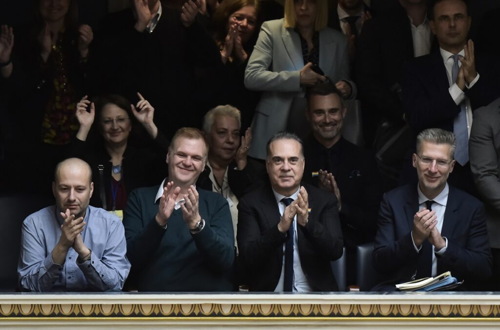 Μάλιστα την ώρα της ανακοίνωσης του αποτελέσματος της ψηφοφορίας ανέβηκαν στο θεωρείο και κάθισαν μαζί του και με τον Φώτη Σεργουλόπουλο ο υπουργός Επικρατείας και Άκης Σκέρτσος και ο σύμβουλος του πρωθυπουργού, Αλέξης Πατέλης.