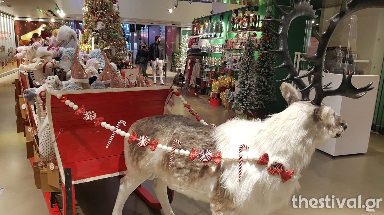 Στολισμένα δέντρα, Άγιοι Βασίληδες, φαναράκια και τάρανδοι είναι ορισμένες από τις πινελιές που συνθέτουν τον χριστουγεννιάτικο “καμβά” του καταστήματος.