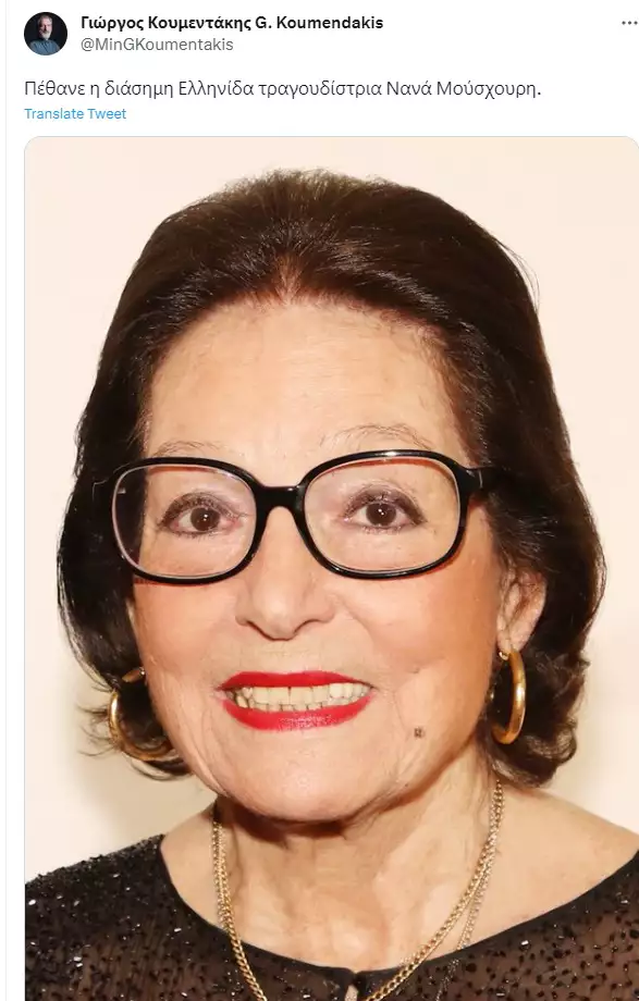 Αναστάτωση επικράτησε, ευτυχώς για λίγο, στα social media νωρίς το απόγευμα της Τετάρτης, με τη μετάδοση της ψευδούς είδησης ότι έφυγε από τη ζωή η σπουδαία ερμηνεύτρια, Νάνα Μούσχουρη.