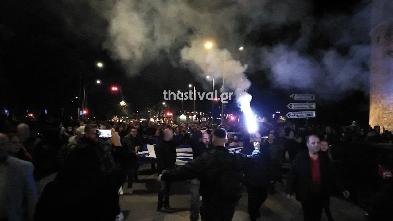 Πορεία διαμαρτυρίας πραγματοποιούν αυτήν την ώρα στο κέντρο της Θεσσαλονίκης αρνητές του εμβολιασμού κατά του κορωνοϊου.